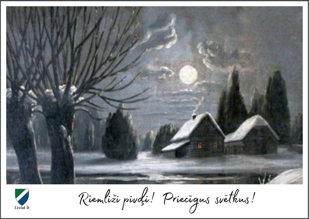 Apsveikumā izmantots fragments no lībiešu mākslinieka un dzejnieka Jāņa Beltes gleznas. Mākslas darba oriģināls atrodas Nenovērtēto lietu muzejā Grobiņā, reprodukcija apskatāma grāmatā “Belte, tas mālders / Belte, se mōļtiji”.