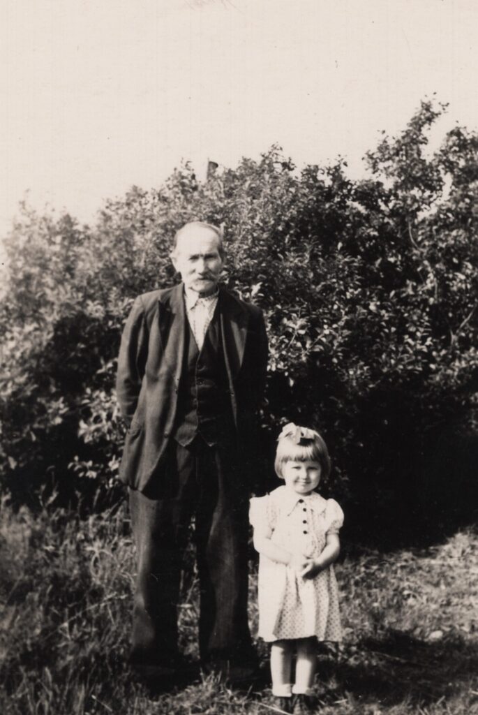 Baiba Damberga (1957) ar vectēvu Kārli Dambergu (1879–1965) Sīkraga Ķeļķos. Foto: Baibas Dambergas albums