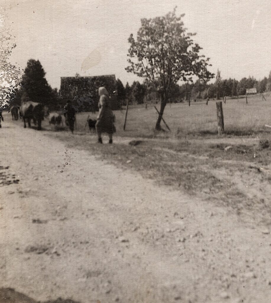 Lopu dzīšana mājās no ganībām. Sīkrags, 1950. gadi. Foto: Baibas Dambergas albums